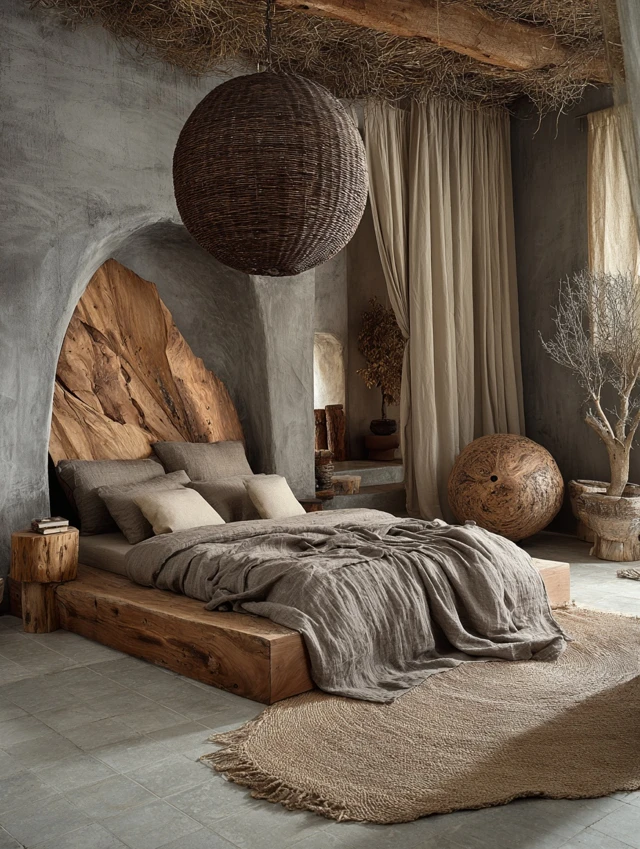 - Natural materials: Wood, rattan, wicker, jute, and clay