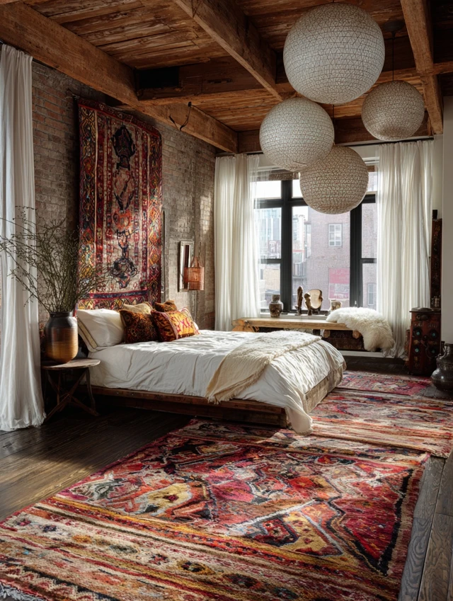 In a boho bedroom, every item tells a story, and the overall space feels warm, relaxed, and inviting.