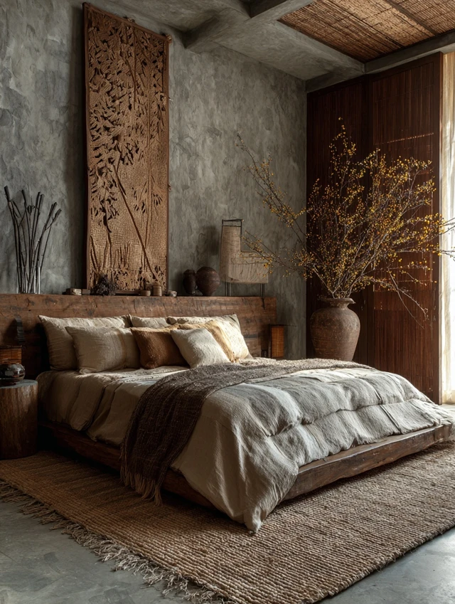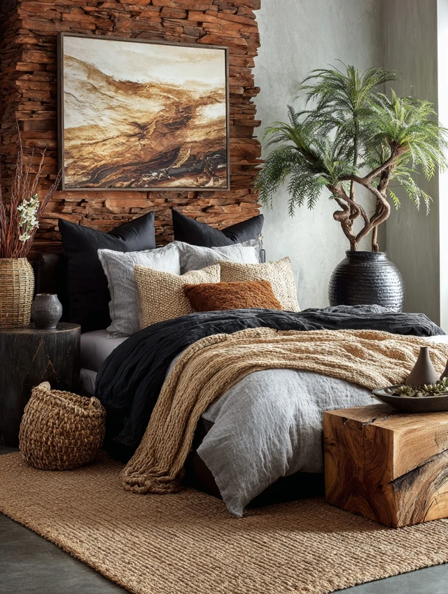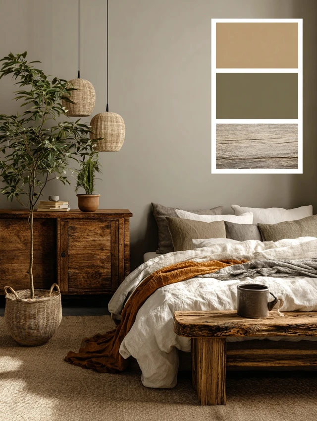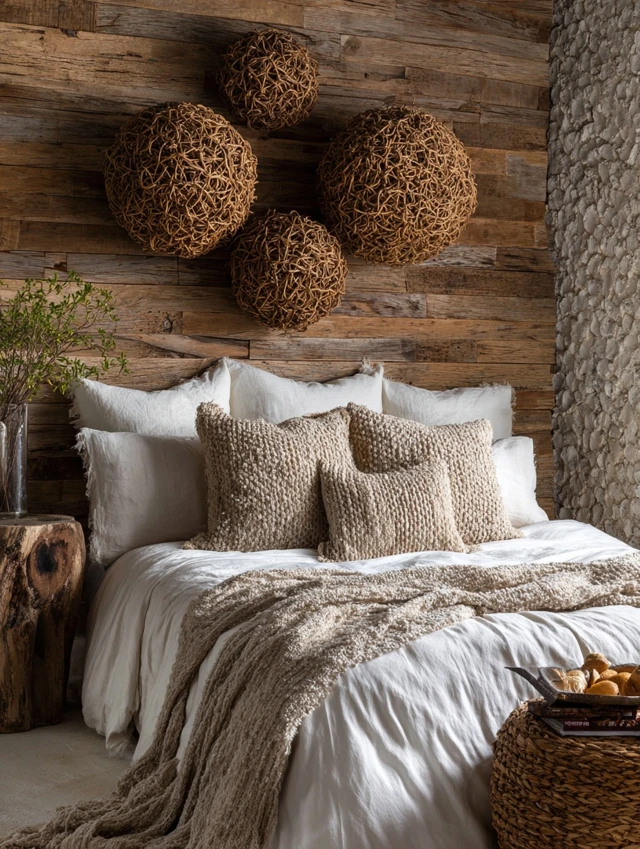 - Natural textures like wood, linen, and wicker
