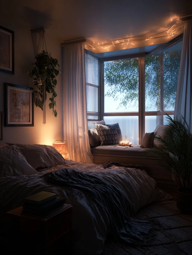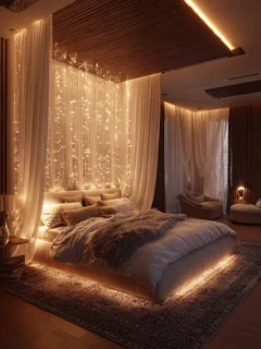 Use warm-toned bulbs and layered lighting for a dreamy effect.