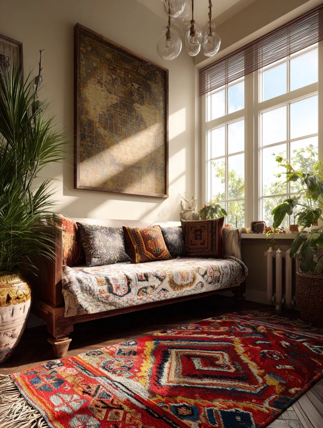Rugs ground the room.
