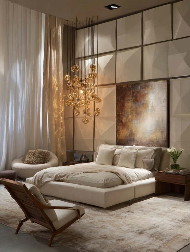 Warm lighting makes the room feel cozy and relaxing.