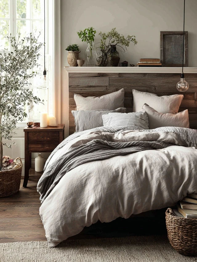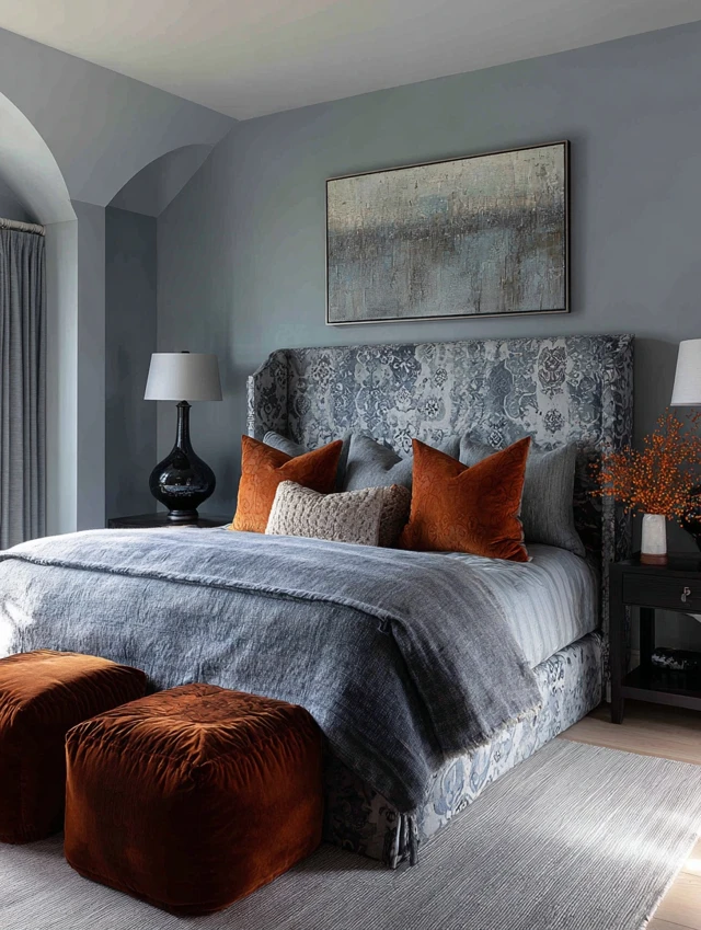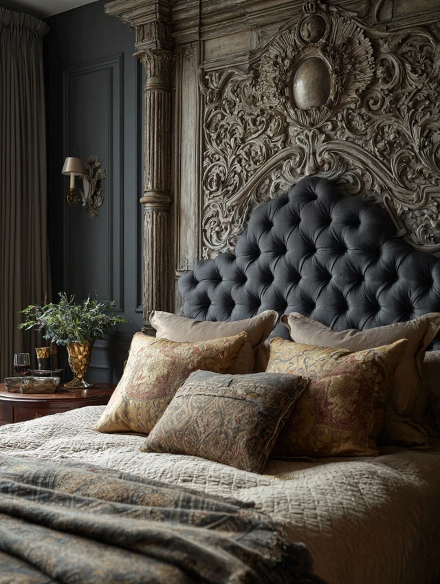 Oversized upholstered or tufted headboards make a bedroom feel bespoke.