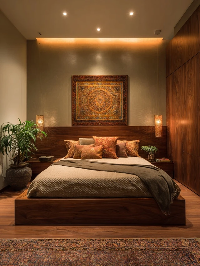 Keeps the room grounded and visually calm.