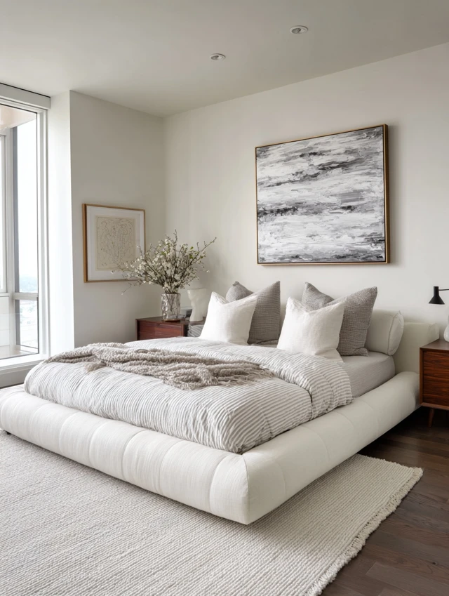 - Neutral color palette: Whites, creams, soft grays, warm beiges