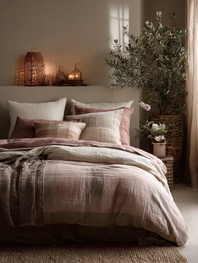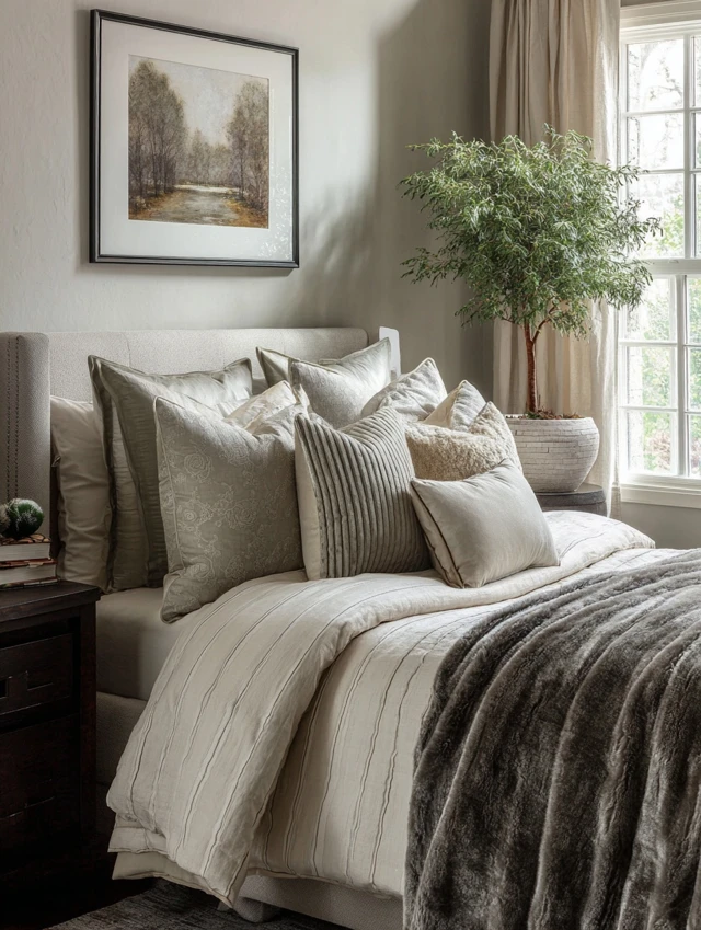 - Stick to a cohesive palette: whites, creams, taupes, grays, soft browns