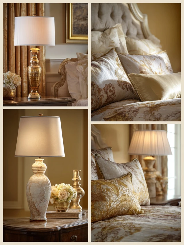 - Vintage or brass lamps for a luxe look