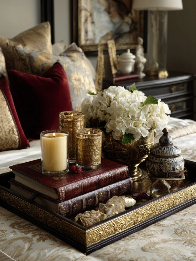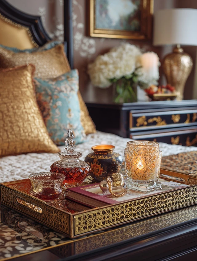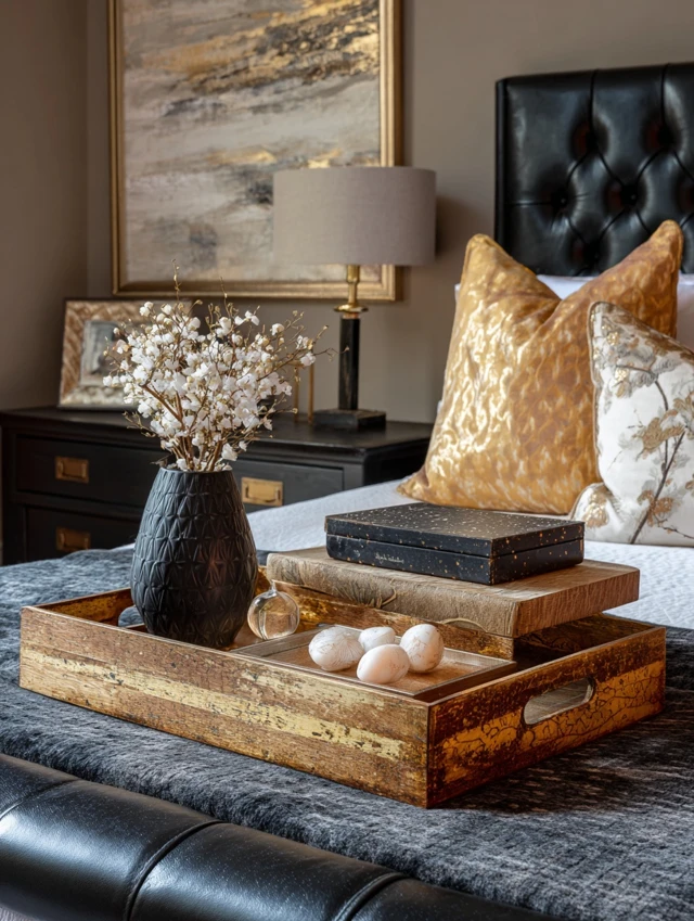 - Marble, wood, or metallic trays to hold jewelry, watches, or candles