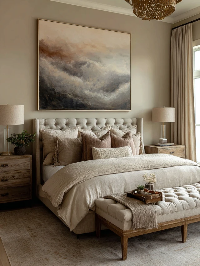 This style proves that elegance doesn’t require extravagance. With clean lines, a neutral palette, and carefully chosen textures, your bedroom can feel luxurious while remaining practical and livable.