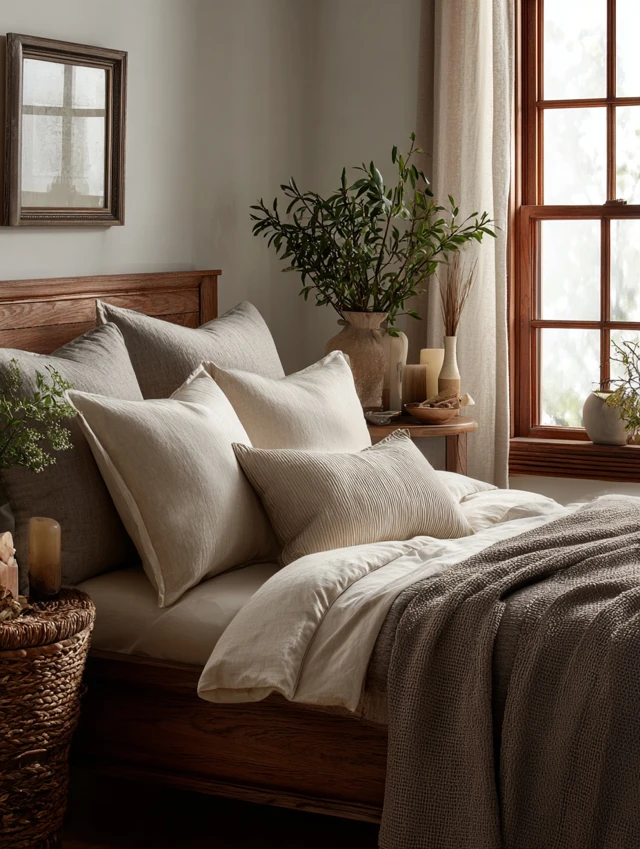 Stick to a cohesive palette; textures like linen, velvet, or cotton create subtle luxury.