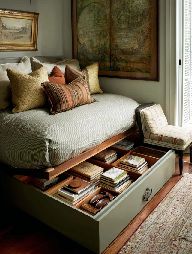 Turns unused space into hidden storage for clothes, shoes, or linens.