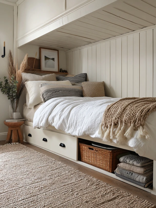 A tiny bedroom can still feel peaceful and polished when storage is intentional and clutter is kept under control.