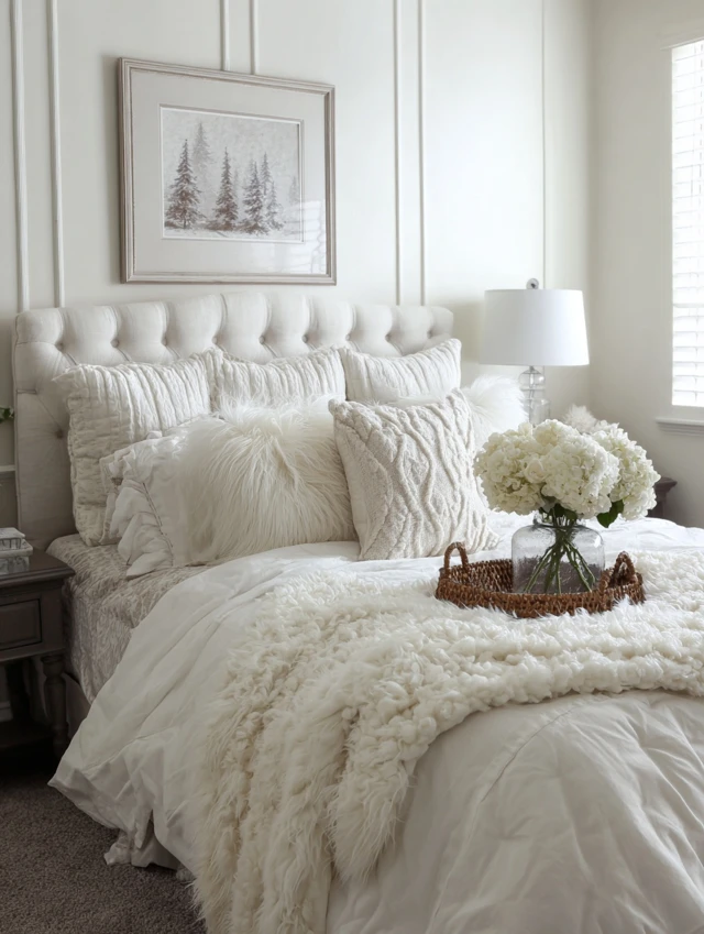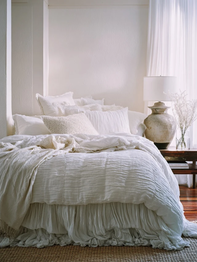 Mix cotton, linen, and soft knits. Combine crisp sheets with fluffy duvets and textured throws.