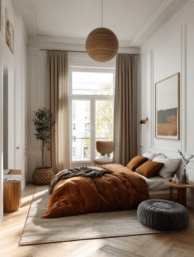 Think vintage dressers, curved headboards, or matte finishes.