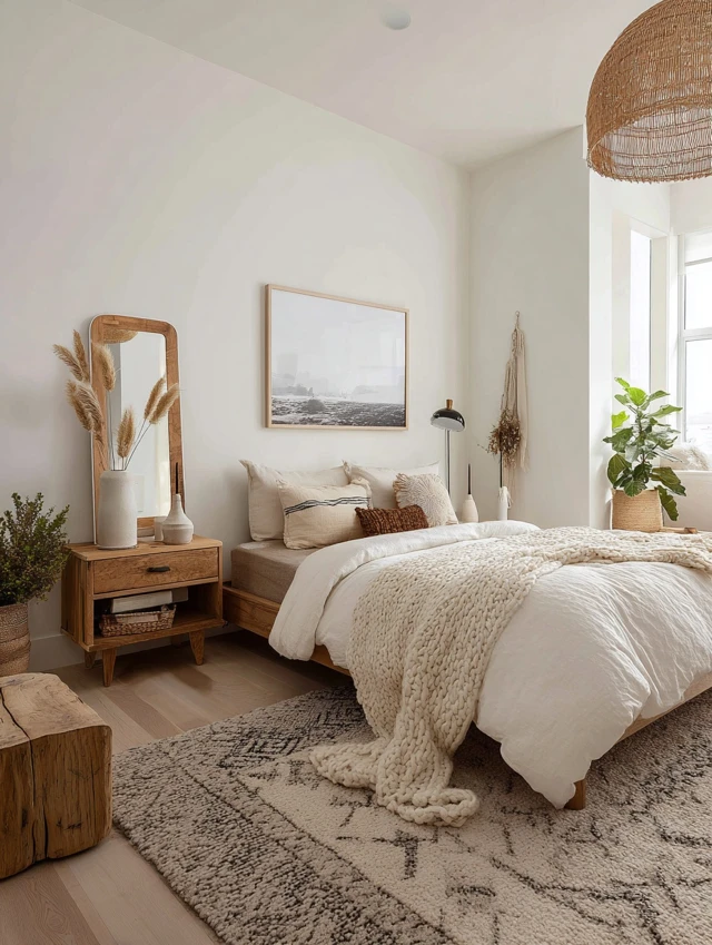5. Natural Accents in a White Bedroom
